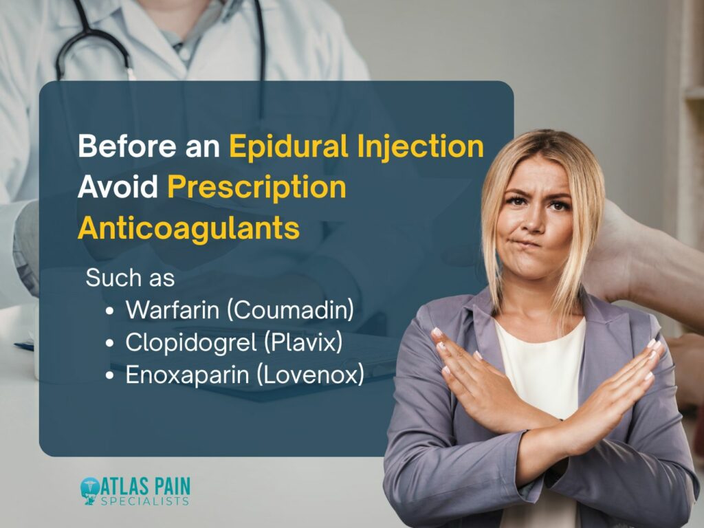 An epidural injection requires precise placement into a space housing delicate blood vessels. The needle or catheter can inadvertently puncture one of these vessels during the procedure. A substance that inhibits the blood's ability to clot increases the risk of a significant bleed in this confined area.