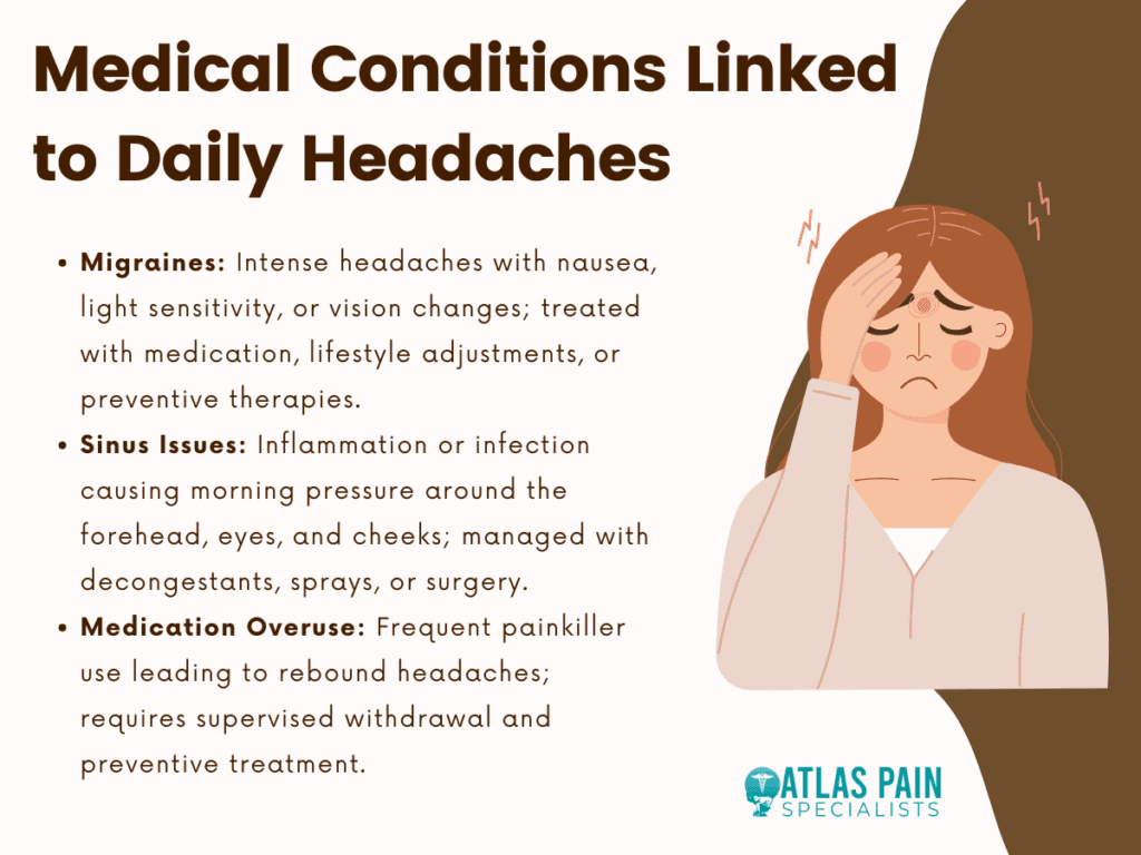 In some cases, daily headaches may signal an underlying medical condition that requires diagnosis and treatment. These conditions often involve neurological or vascular changes that intensify pain.